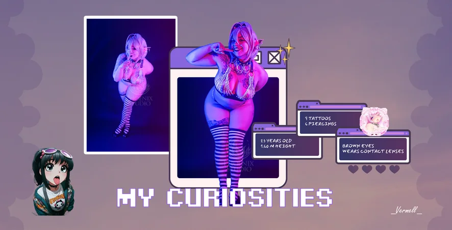 I'm a cosplay girl who lives between the real world and the world of fantasy 💫. Cheerful, smiling, and always ready to bring a smile to your face with my playful vibe 😏. I love bringing sexy and daring characters to life while showing off my dangerous curves: big breasts, an even bigger butt, and a smile that wins over even the most serious people 💋.